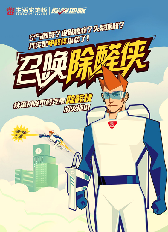 和一般控制甲醛技術(shù)的思路不同,生活家除醛地板,其關(guān)鍵在于“殺死”甲醛這一革命理念。不但自身甲醛含量超低,它還能捕捉分解室內(nèi)環(huán)境中的游離甲醛,充當居家生活的安全衛(wèi)士。此次,生活家地板火熱推出“召喚除醛俠”,即將盛大登錄生活家地板全國各大門店。