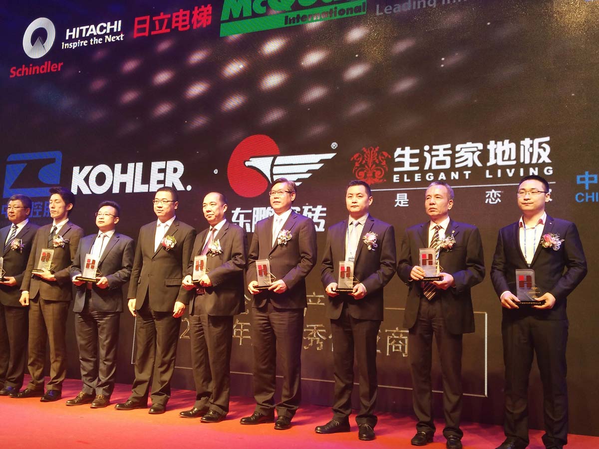 右起第2,生活家地板朱鐵鋒副總經(jīng)理上臺(tái)領(lǐng)獎(jiǎng)