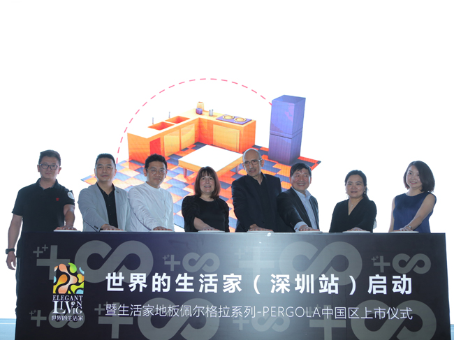 致辭過后,四位主辦方代表偕同嘉賓共同啟動(dòng)了世界的生活家(深圳站)暨生活家地板佩爾格拉系列PERGOLA中國區(qū)上市儀式